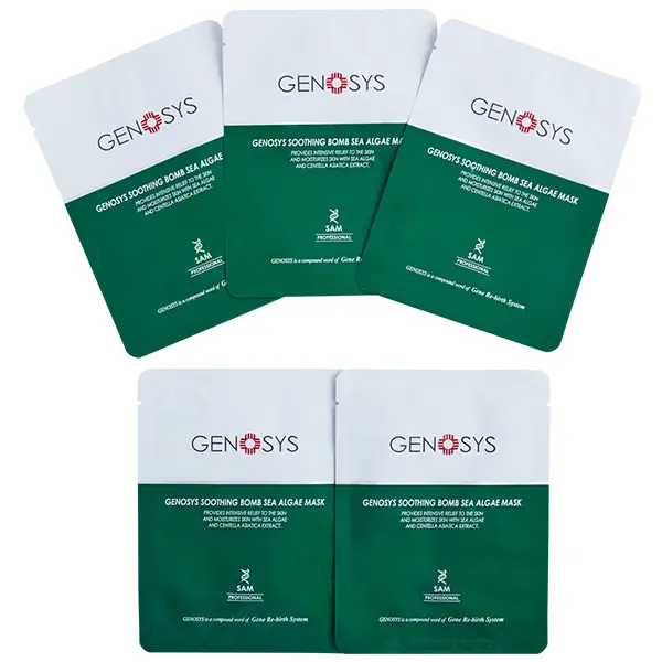 A GENOSYS SOOTHING BOMB SEA ALGAE MASK intenzív megnyugvást ad a bőrnek, tengeri alga komplexszel és Centella asiatica növénnyel hidratál.